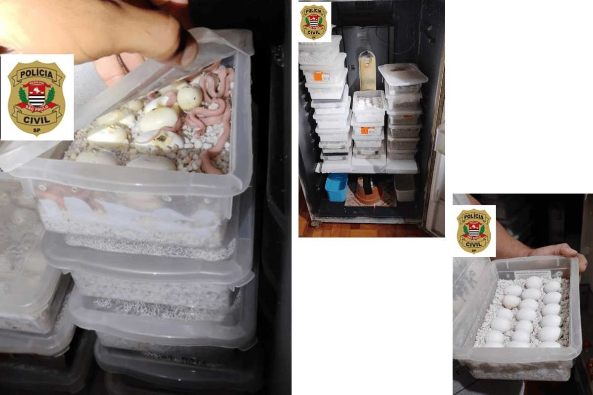 Com base nos elementos reunidos, a Polícia Civil representou pela expedição de mandados de busca e apreensão, que foram autorizados pelo Poder Judiciário. Durante o cumprimento de quatro mandados, realizado com apoio da Polícia Militar Ambiental, os agentes localizaram 41 cobras da mesma espécie, sendo 36 adultas e cinco filhotes, além de 264 ovos acondicionados em incubadoras. Também foram apreendidos materiais que confirmaram a estrutura montada para reprodução e comercialização ilegal dos animais.